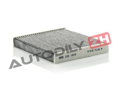 Naše kabinové filtry s označením CUK obsahují vrstvu aktivního uhlí. Kromě 95% účinnosti filtrace sazí, prachu a jiných částic dokáží díky této dodatečné vrstvě zachytit až 90 % plynů, které pronikají do vozidla ventilačním systémem. Mezi tyto plyny patří například škodlivé toxiny, jako je toluen, oxid dusičitý, ozon, oxid siřičitý a nepříjemné pachy.