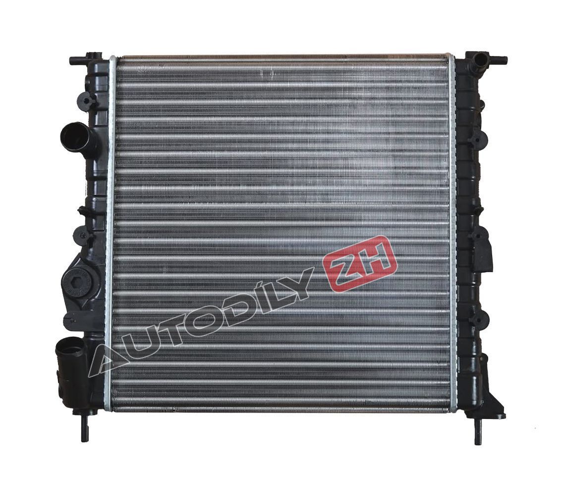 Značka: RENAULT Model: CLIO II Rok výroby: 1998-2012 Pouze pro roky: 12/1998-03/1999 Motor: Clio 1.2 (1149ccm, 43kW, benzín ) Kód motoru: D7F Převodovka: manuální Klimatizace: pro verzi bez klimatizace Rozměry (cm): 350x375x23 (vxšxt) Materiál: hliníkový rošt, plastové nádržky